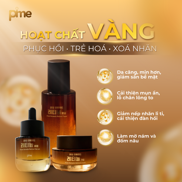 Đó cũng là lý do Pime ra mắt Bộ 3 Retinol thế hệ mới, lấy Retinol 0.1% làm trụ cột, được đặt trong một hệ sinh thái trẻ hóa hoàn chỉnh gồm NMN – 4 peptide sinh học – tổ hợp hoạt chất chống oxy hóa đa tầng. Một giải pháp được xây dựng theo đúng tư duy phác đồ spa: hiệu quả rõ rệt, nhưng an toàn và bền vững cho làn da.